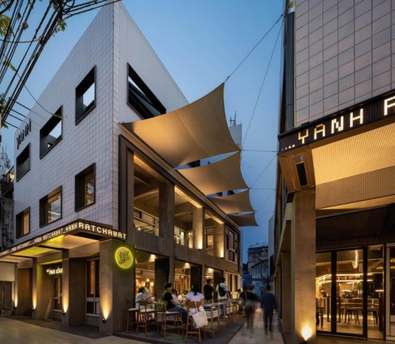YANHは「Your Average Neighborhood Hotel」の略であり、バンコクのラチャワット地区の風習や雰囲気に浸ることができます。ラッタナーコシン島に位置するラチャワットは、グランドパレスや有名なワットポー寺院などの人気観光スポットに近い地域です。その古い町並みの地区はアクセスが容易であり、観光客にはまだあまり知られていない本物の地元の雰囲気を醸し出しています。CHATアーキテクツは、新築ではなく、既存の3つの建物を修復し、この地域の歴史的建築物の特徴を巧みにホテルのレイアウトに取り入れました。この地域は、運河の橋や植民地時代の邸宅など多様な要素を取り入れたハイブリッドな建築様式で知られています。客室の広さや景観の悪さといった元の建物から受け継いだ課題に対しては、客室の壁を廊下まで伸ばしたり、自然光を取り入れるためにガラスの間仕切りを導入するなど、革新的な解決策を講じました。